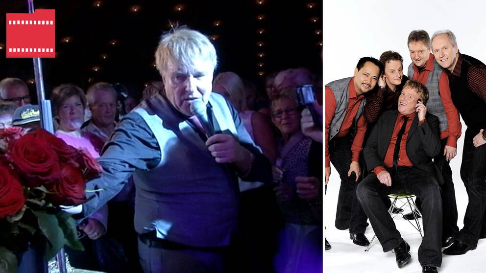 Thorleif torstensson håller i guldskivan som bandet fått för albumet förälskade.